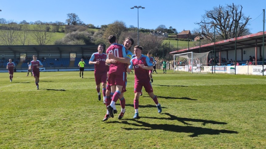 They beat neighbours Llandudno 3-0 in a feisty ‘derby’ against Llandudno in front of a crowd of 1,378, the biggest of the season at the 4 Crosses Arena, while main rivals Airbus were held to a 1-1 draw by Mold Alex – with former Bay defender Lucas Gregson heading a late equaliser for Mold.