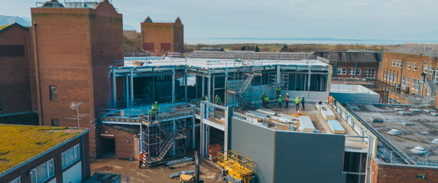 The external structure of the new £29.4m Elective Orthopaedic Hub is starting to take shape at Llandudno Hospital.