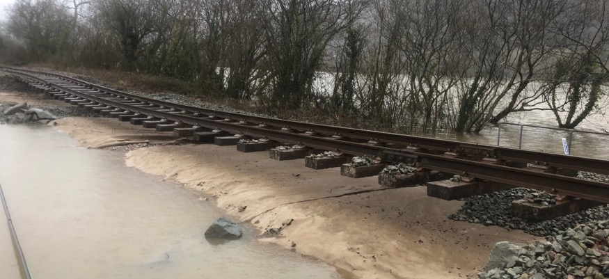 Storm Ciara, which bought 90mph winds, extreme rainfall, and flooding across Wales, has caused extensive damage on the Conwy Valley Line, just north of Llanrwst.