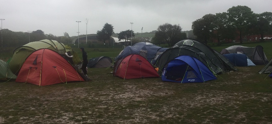 Students camping in Eirias Park ahead of a special event in Colwyn Bay saw some tents damaged and brought to the ground.