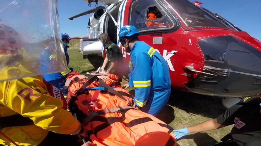 The volunteer lifeboat crew helped to create a safe landing zone for the aircraft and assisted with transferring the casualty onto the helicopter before heading back to the boathouse to prepare the lifeboat for any potential calls.