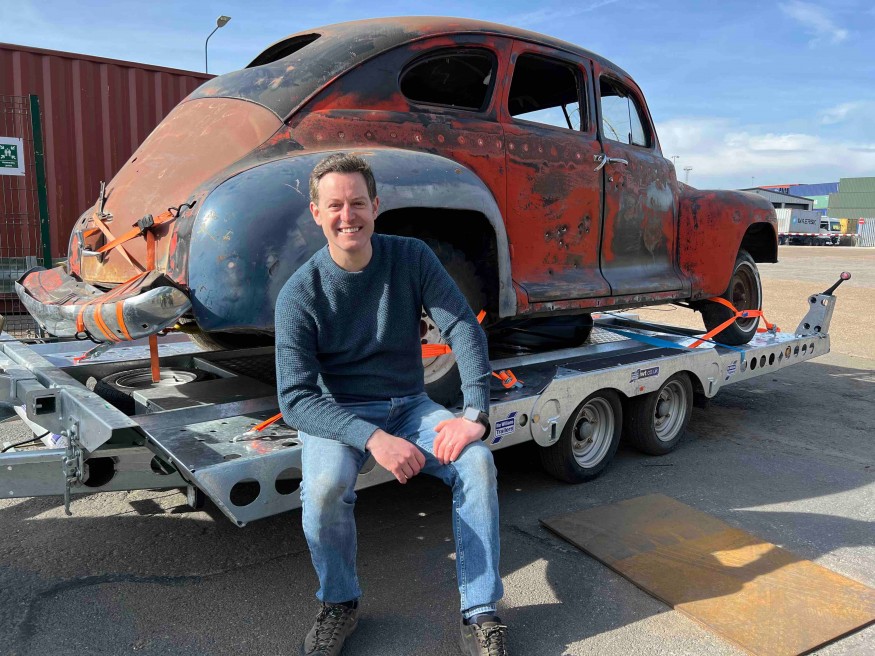 Having bought a livestock trailer last year from Ifor Williams Trailers – which has factories in Denbighshire and Flintshire - Matt enlisted them to help transport the shell of the old Plymouth car which he had arranged to be shipped over from a desert in the USA to Felixstowe.