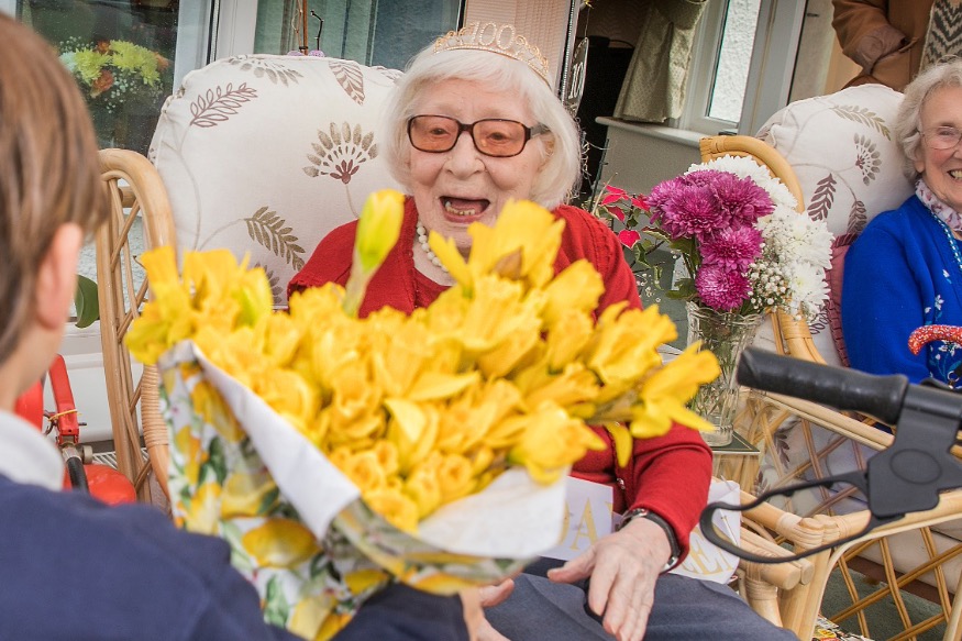 Pupils surprise care home resident on her 100th birthday
