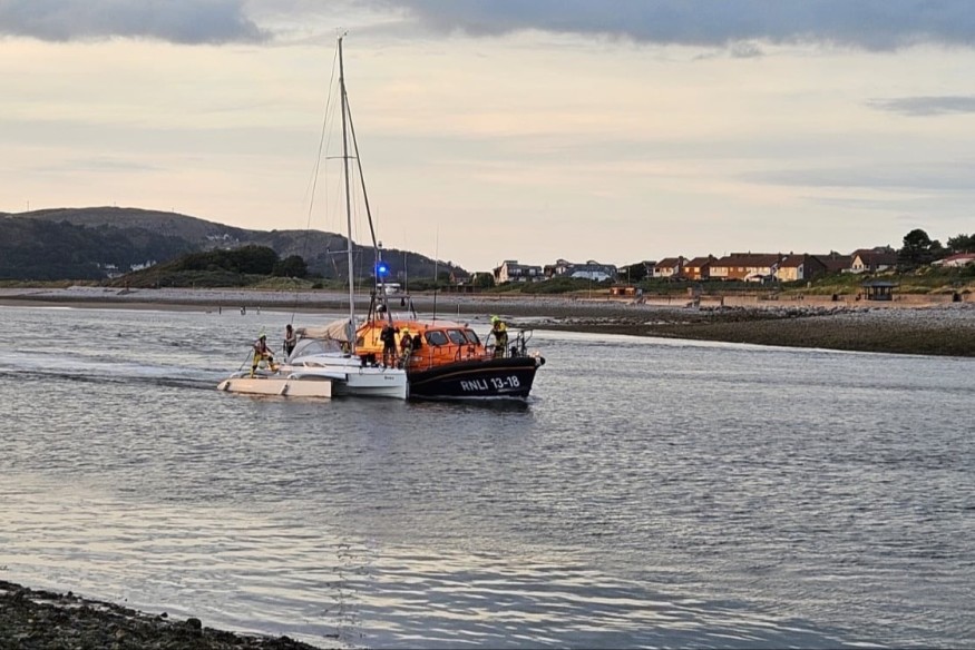 Stranded Trimaran towed to safety by Lifeboat Crew