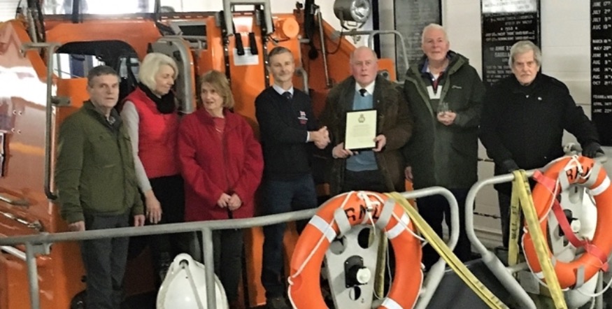 The committee he had been a part for so many years aptly chose to present Tony with his certificate and a specially engraved glass at Llandudno lifeboat station.