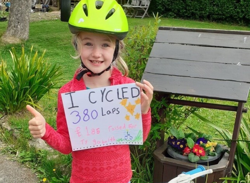 In Colwyn Bay, Emma Lidgett cycled 26 laps around her garden and in Rhyl six-year-old Harry Thorogood, who has a rare life-threatening condition and is supported by Tŷ Gobaith, did his 2.6 mile walk on his grandad Colin’s shoulders.