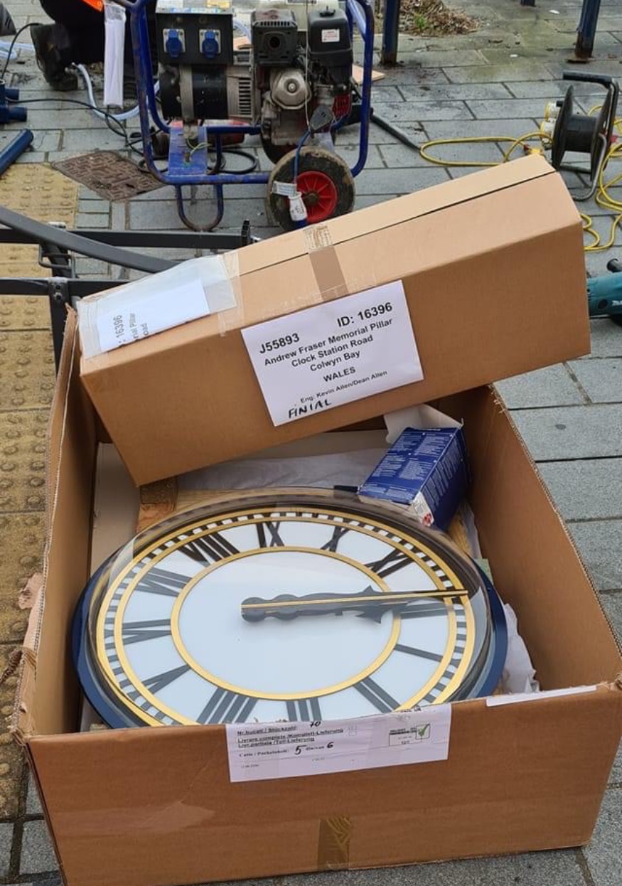 Thanks to support from the local community and the Colwyn Town Council, funds to replace the inner workings of the clock have been acheived and work has been going on this week to get the clock back in its rightful place.