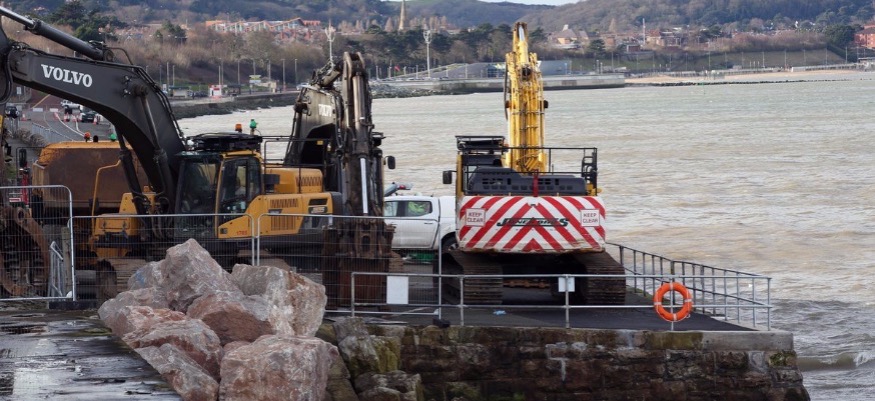 Following worries about the width of the pathway due to the work that is being carried out to build up the sea defences, cyclists have been reminded that they must dismount to use the diversion on the pedestrian footpath running along the bottom of the railway embankment.