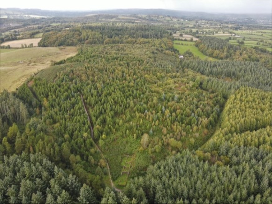 The plan includes seven forest blocks with a total area of 749 hectares, most of which are within 4km to the A494 road. Coed Moel Famau is the largest block at 428 ha, which lies on the upland spine of the Clwydian Range roughly halfway between Ruthin and Mold.