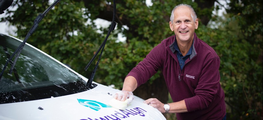 In addition to taking part in next year’s London Marathon, he’s embarked on a tour of all the other housing associations in North Wales where he’s washing cars in return for a donation.