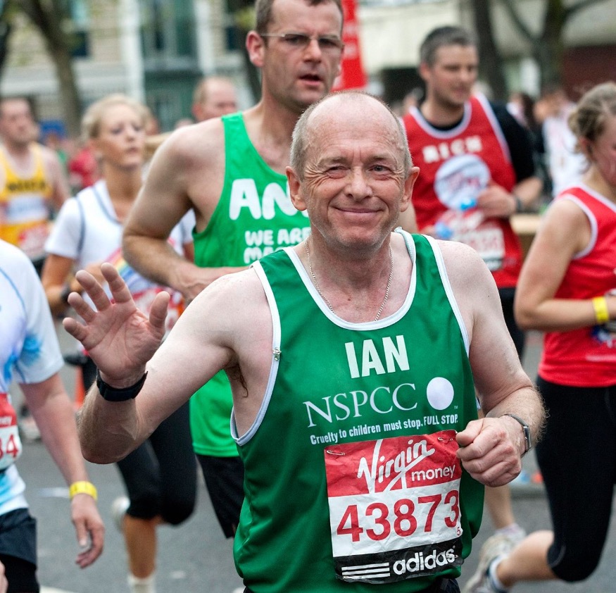 Ian didn’t have a ballot place for the race, but answered an appeal by the NSPCC to fill one of its charity places, with 13 marathons for Childline already under his belt.
