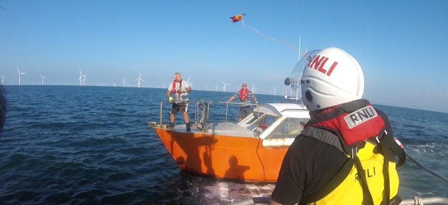 Arriving at the location, Llandudno Lifeboat William F Yates was able to establish that the fishermen on board were both fit and well although unfortunately their boat was beyond immediate repair.