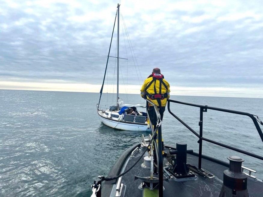 After launch, the Llandudno lifeboat proceeded twenty-four nautical miles north of the Great Orme to the reported location, once on scene and in communication with the Holyhead Coastguard the Coxswain agreed to place a crew member on board and to tow the sailing vessel to a safe location.