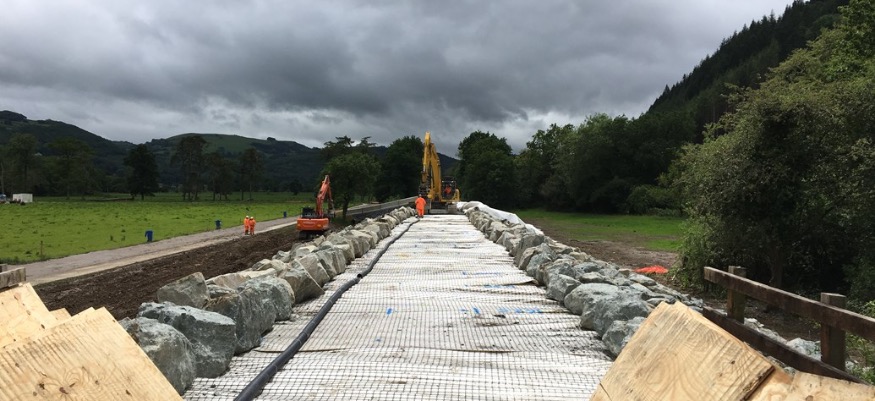 The line will reopen in July, ahead of the Eisteddfod. To date engineers have removed 8000 tonnes of wash out material which will be recycled and have installed approximately 7500 tonnes of ‘rock armour’ to improve the resilience of the railway line.