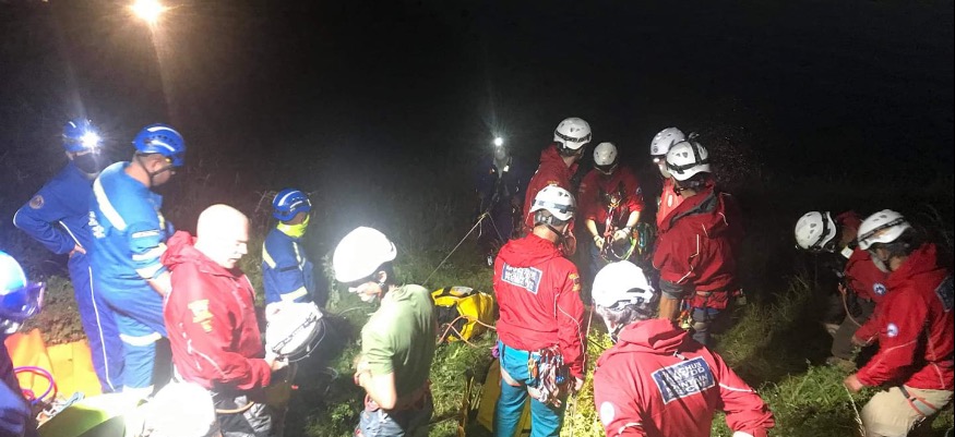 This saw emergency team members lowered to the casualties who were then placed in emergency harnesses before being recovered to safe ground.