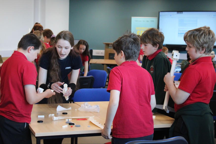 With the help of RWE apprentices studying at the college’s wind turbine training facility, the children assembled the turbines from a kit, before using portable fans to power the attached batteries.