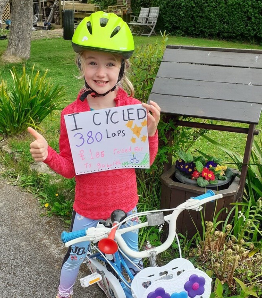 With the restrictions in place due to the Lockdown, 7 year old Emma Lidgett of Colwyn Heights, decided to set herself a challenge of riding her bike at least 26 laps around her garden, every day for 7 days.