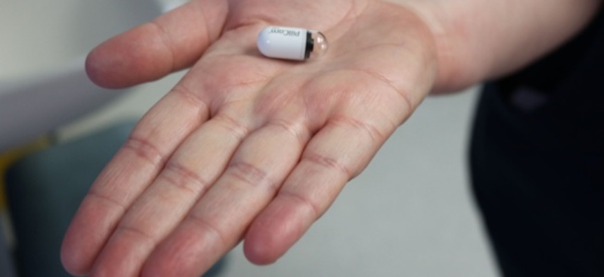 The capsule, which is the size of a large vitamin pill, is swallowed by the patient, who is then free to go back to work or home. On its journey through the oesophagus, stomach, and small intestine it takes around 100,000 images, which are then transmitted to a data recorder on a belt.