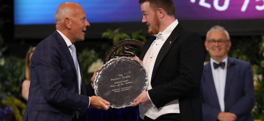 Following a thrilling sing-off, watched by his proud parents and loving fiancée, he was presented with the Pendine Trophy – a solid silver salver, and a £3,000 prize by Mario Kreft MBE, proprietor of the arts-loving care organisation, Pendine Park, who sponsor the competition.