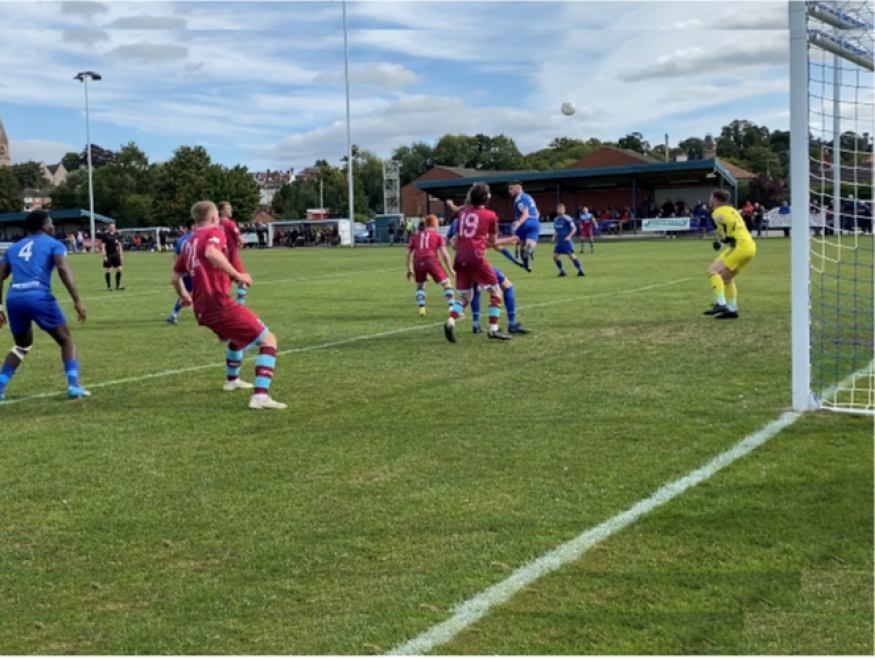 Much of a scrappy game was played in the middle third, but the home side took the lead on 11 minutes with a back post header from Will Williams.