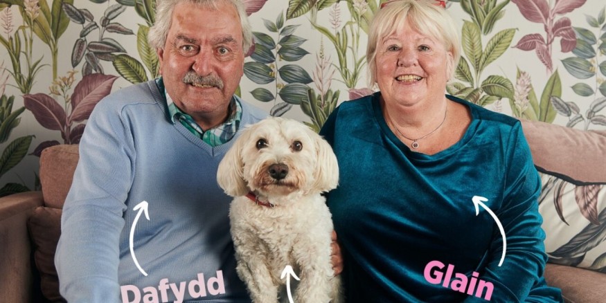 Viewers have fallen in love with the small, white-haired Bichon Westie dog who sits on the sofa alongside his owners, Glain Jones and Dafydd Jones, during the filming of S4C’s Gogglebocs Cymru at their home in Denbigh.