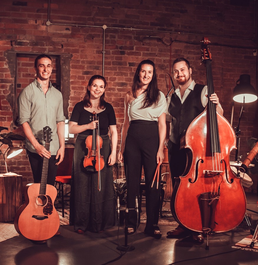 Manchester-based Kabantu includes violinist and whistler Katie Foster, guitarist Ben Sayah, Ali McMath on double bass, didgeridoo and banjo with Delia Stevens on percussion.