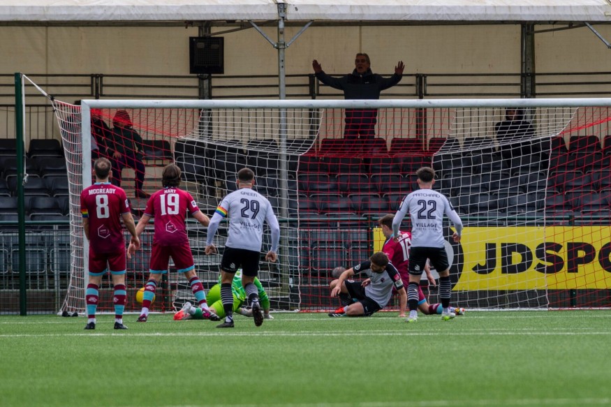 Tom McCready also sent a volley straight at the keeper.