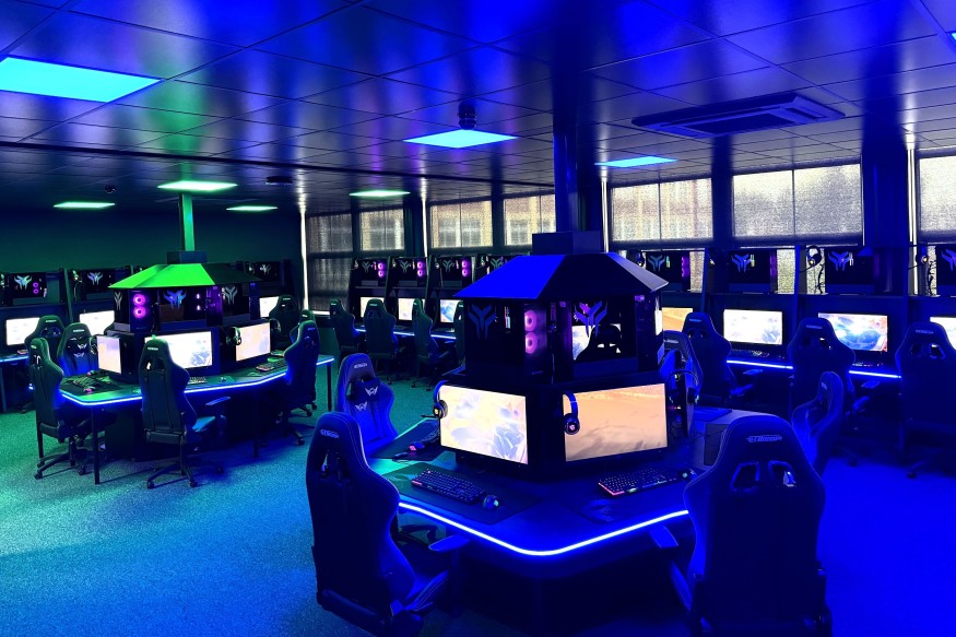The space has been optimised with two separate desk designs, complete with LED edge lighting and PC locking shelves, with a divider which can split the facility into two to allow separate gaming competitions, lectures and workshops.