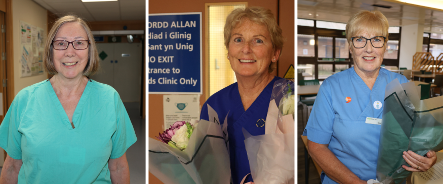 Three Ysbyty Gwynedd nurses are celebrating almost 150 years of healthcare service between them this year.