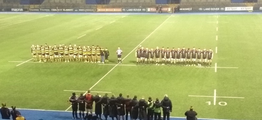 At yesterday's rugby match between RGC and Newport RFC at Cardiff Arms Park teams and supporters observed a minutes silence before the game kicked off to show their respects.