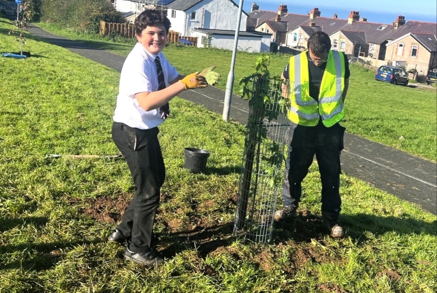 Following their incredible efforts in collecting more than 12,000 pieces of litter from beaches and parks during the summer, pupils from Ysgol Eirias in Colwyn Bay seeded more than 6,000 bulbs and 20 trees on Craig Road, Old Colwyn.