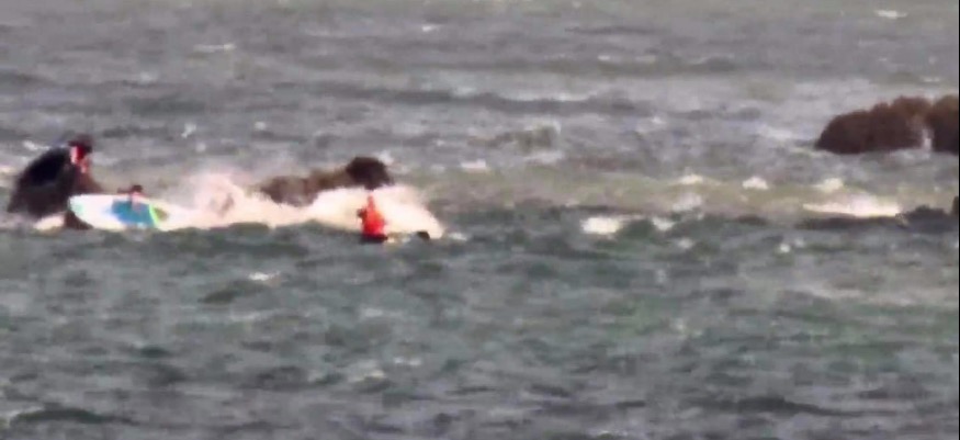 A volunteer crew of three were required to go to the assistance of the paddle boarders who were in difficulty due to a strong offshore wind and tide pushing their boards out to sea, making it difficult to return to shore.