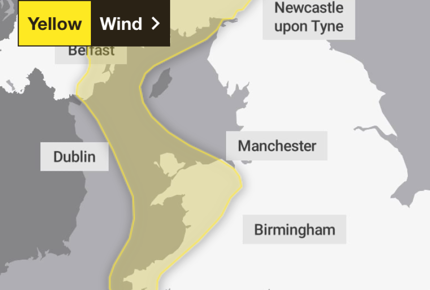 The Met Office has issued a Yellow weather warning until 8am on Wednesday.
