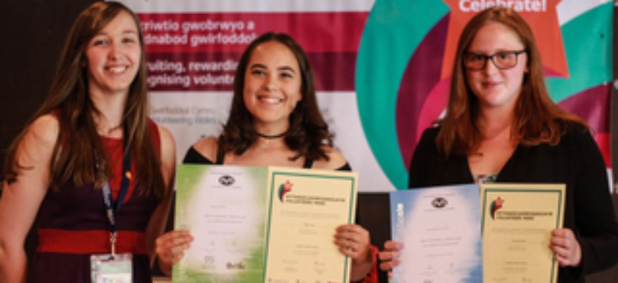 Paige Dean, 18, was presented with her Award at Cardiff City Hall. She is a member of a Conwy Youth Service Youth club aged 11, and her interest in volunteering began when she assisted at a community arts event.