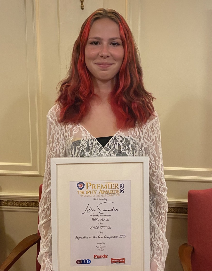 Lillie, who studies Level 2 Painting and Decorating at the Rhos-on-Sea campus, placed third in the PDA Apprentice of the Year competition.