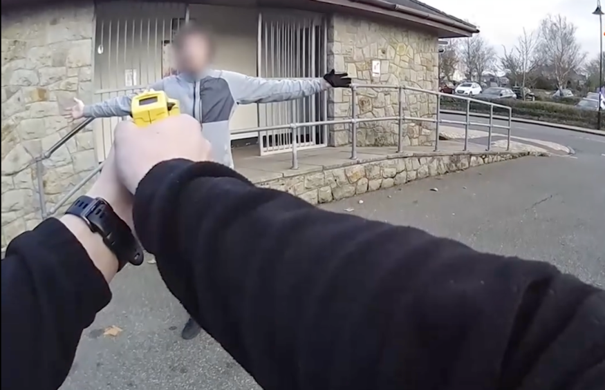 Police responded to community reports, tasered the man, and charged him with possessing a knife in public.